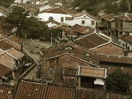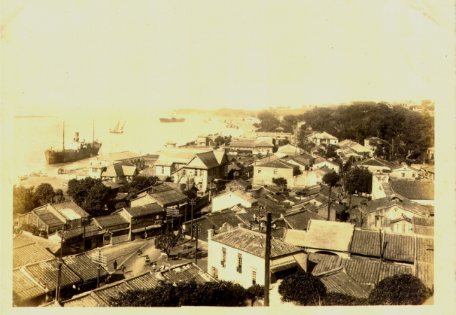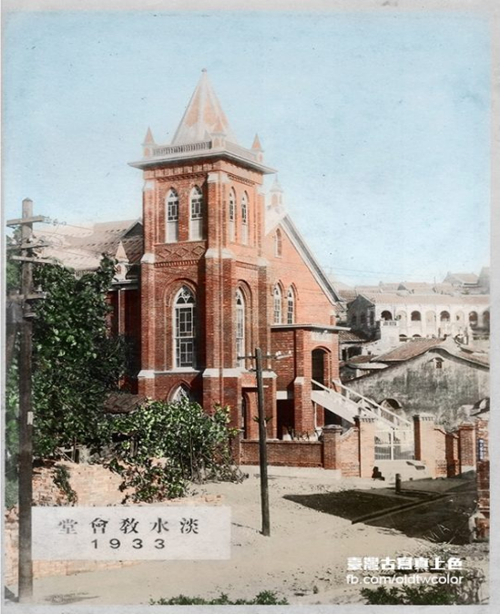 9.1930年前後淡水港照片可看到淡水教會白色禮拜堂。